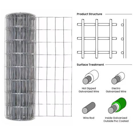 Panel de valla de malla de alambre soldado galvanizado por inmersión en caliente 2x2 Sheepyard Mesh 6mm Hojas de malla de alambre soldadas Tamaños